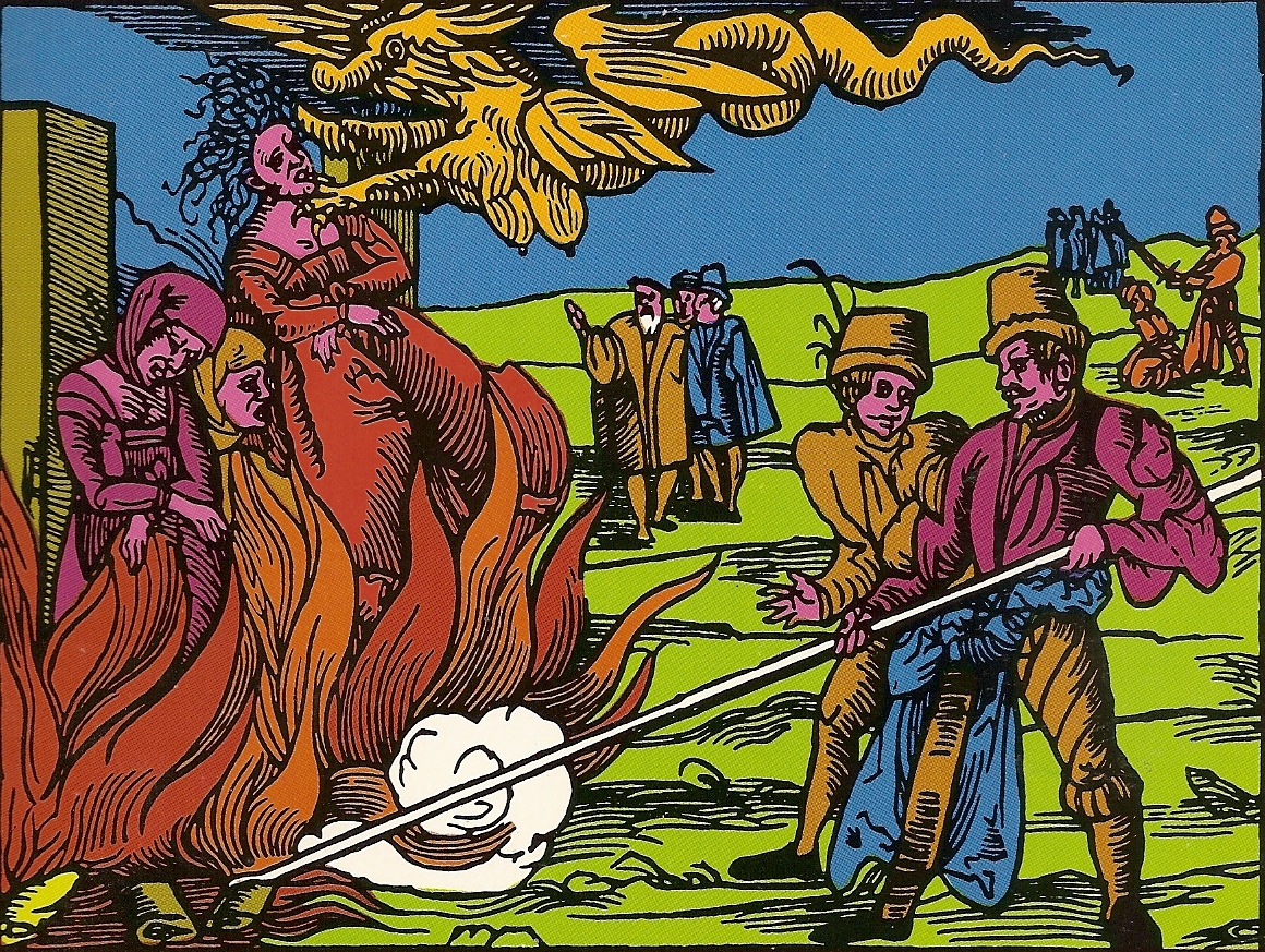 Zdjęcie w artykule: Burning witches Malleus Maleficarum Montague Summers, XV wiek (?), nieznany autor, link.