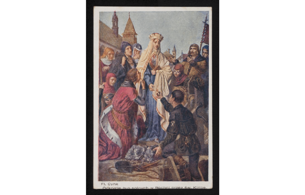 Zdjęcie w artykule: Fl. Cynk. Odkrycie żup solnych w Bochni przez św. Kingę, Domena Publiczna, https://polona.pl/item-view/be993f73-a2e1-4bc3-92b8-3b3f444455c4?page=0